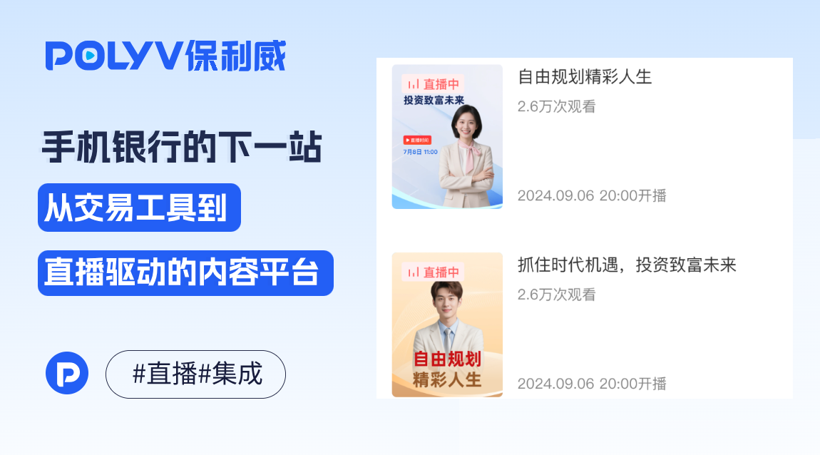 2026年初,两大关键数据勾勒出银行业面临的时代截面:一方面,超过50万亿元的定期存款迎来到期高峰,资金再配置的巨浪暗涌;另一方面,A股单日成交额已刷新历史纪录,市场交投情绪火热。这两组数据背后,是海量资金寻求出路与居民投资决策日益依赖线上内容、渴求专业陪伴之间的巨大鸿沟。对于银行而言,其最核心的数字化阵地——手机银行App,已从交易工具向“财富生活中心”与“专业决策平台”加速演进。在这一战略转型中,内置的专业投资理财直播与视频内容,正成为区分银行服务能力、实现客户与资产留存的核心关键,更是银行业从“渠道为王”迈向“内容与关系为王”新周期的必然选择。而深耕金融行业的保利威,凭借其对“直播如何驱动银行业务”的深刻洞察与实践,正成为众多银行定义这一新周期的核心伙伴。
