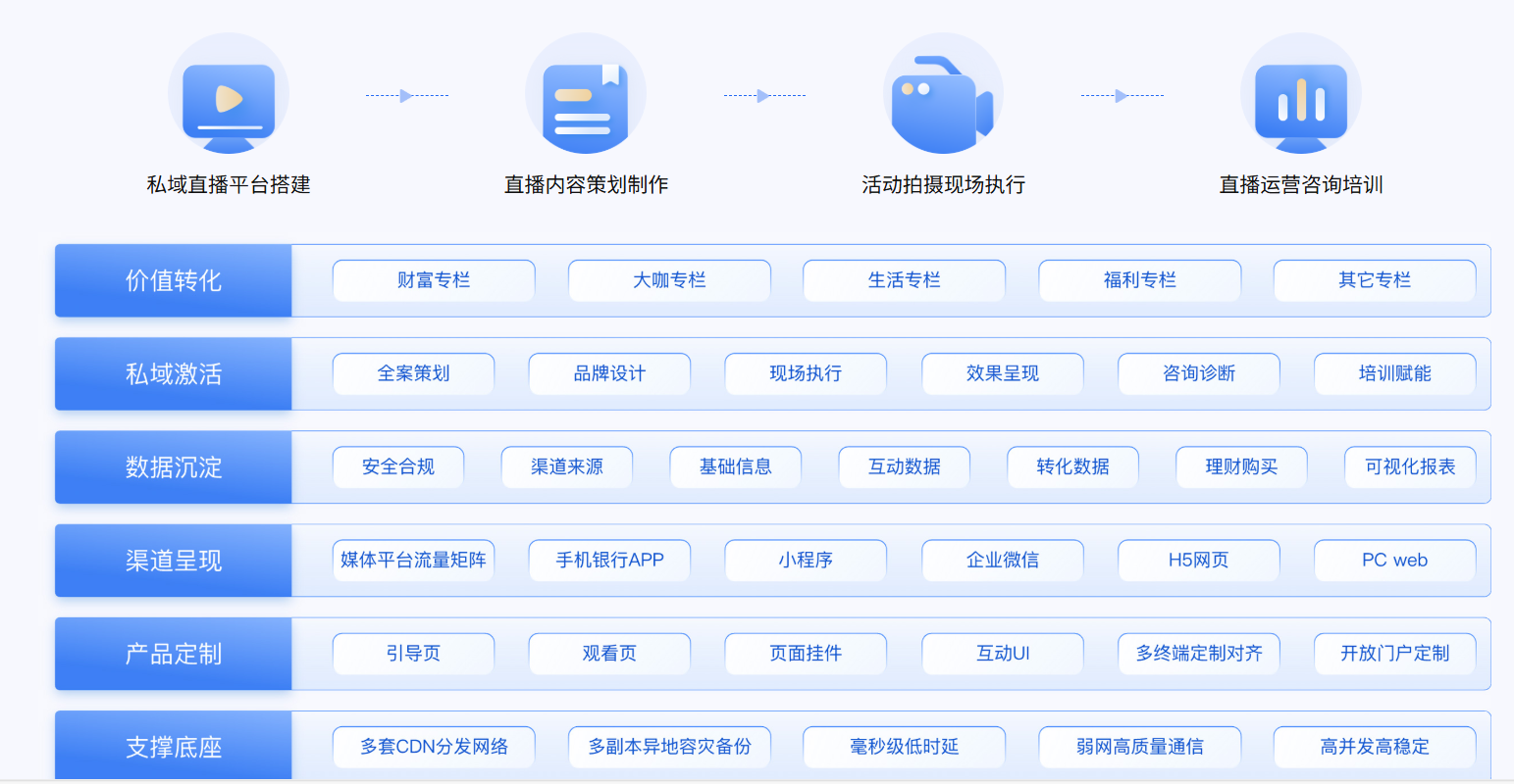 4.设计数据驱动的迭代闭环:建立业务导向的评估体系,核心关注内容吸引力(人均观看时长)、互动质量(问答参与率)、业务影响(相关产品访问增幅、客户经理连接请求数)三类指标,用数据驱动持续优化。