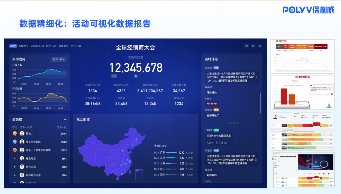 3.活动后是否有产出:提供直播智能剪辑与直播素材专业存档服务,同步生成超精细数据复盘报告,分析观众参与度与环节效果,为后续活动优化提供支撑。