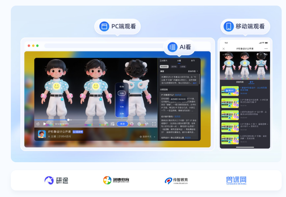 除了提升学习效率,学习体验的连贯性与课程资产的安全性同样不可或缺。学员常常需要在教室、宿舍、通勤路上切换场景,而跨终端(PC/App/小程序)的进度同步功能,让他们能够真正实现“断点续学”,碎片化时间也可以被串联成完整的学习流。