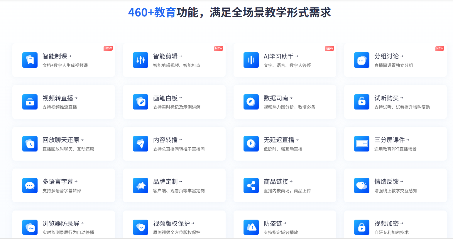 面对上述“新现实”,教培机构需要的不再是简单的“线上化工具”,而是一个能够支撑教学创新、促进融合、保障效果的数字化平台。保利威作为深耕教育行业的直播云服务商,其产品矩阵正为机构迎接2025新趋势提供关键技术支撑。