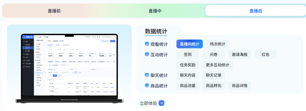 直播数据自管:直播数据归企业商家管,独立掌握直播全部数据