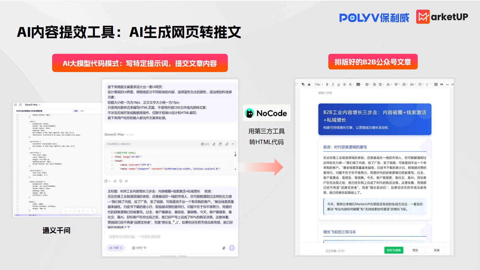 近日,保利威携手MarketUP发布《B2B Vibe Marketing:AI内容+GEO实战白皮书》(下文简称白皮书),提供从人员管理、内容生产到GEO优化的完整思路,帮助企业通过AI构建Vibe集客内容体系(文末领取白皮书完整版)。