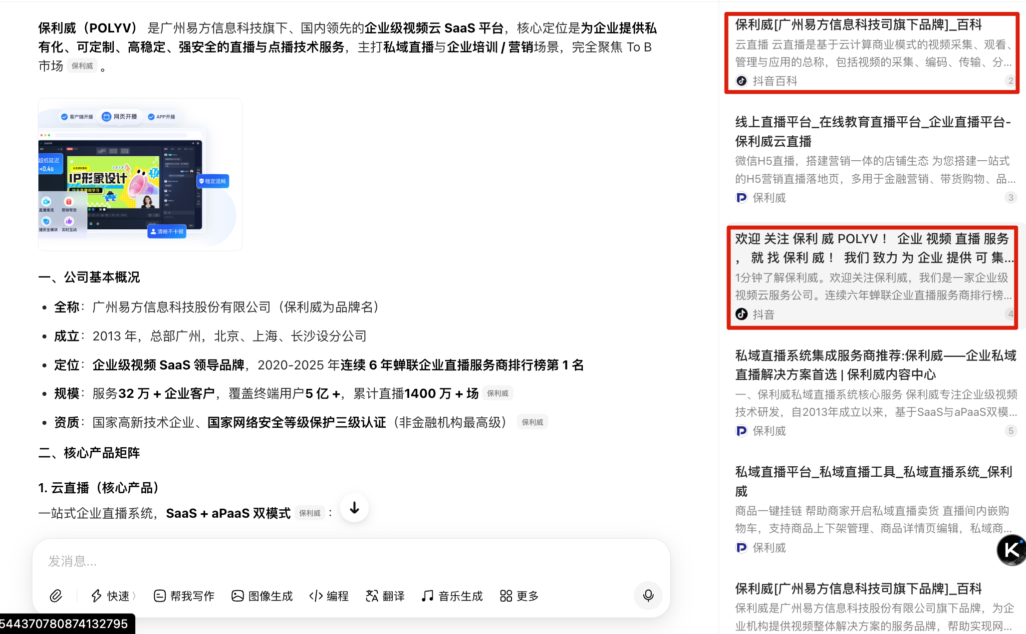 在此基础上,保利威全域云分发能力进一步放大 GEO 效果,支持将直播一键同步至官网、小程序、视频号、知乎、B 站、小红书等全渠道阵地,形成高密度、广覆盖的内容场。