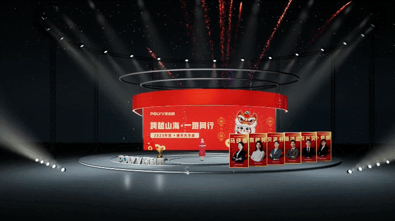 第二种是线上+线下混合联动:总部设主会场,线下举办晚宴、节目,各地分公司通过大屏连线同步观看直播,实现跨区域互动。