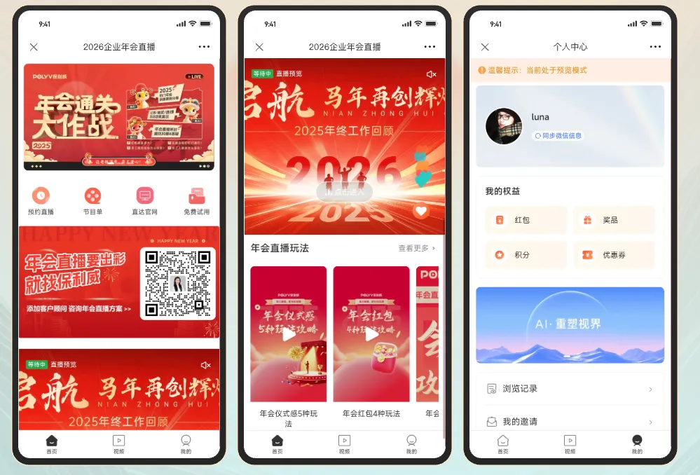 如果你的企业需要专业的年会直播技术支持,保利威可以提供定制化直播方案、高并发直播平台、现场落地执行等全流程服务,助力你轻松打造一场高效又出彩的年会。省心办年会,就找保利威!