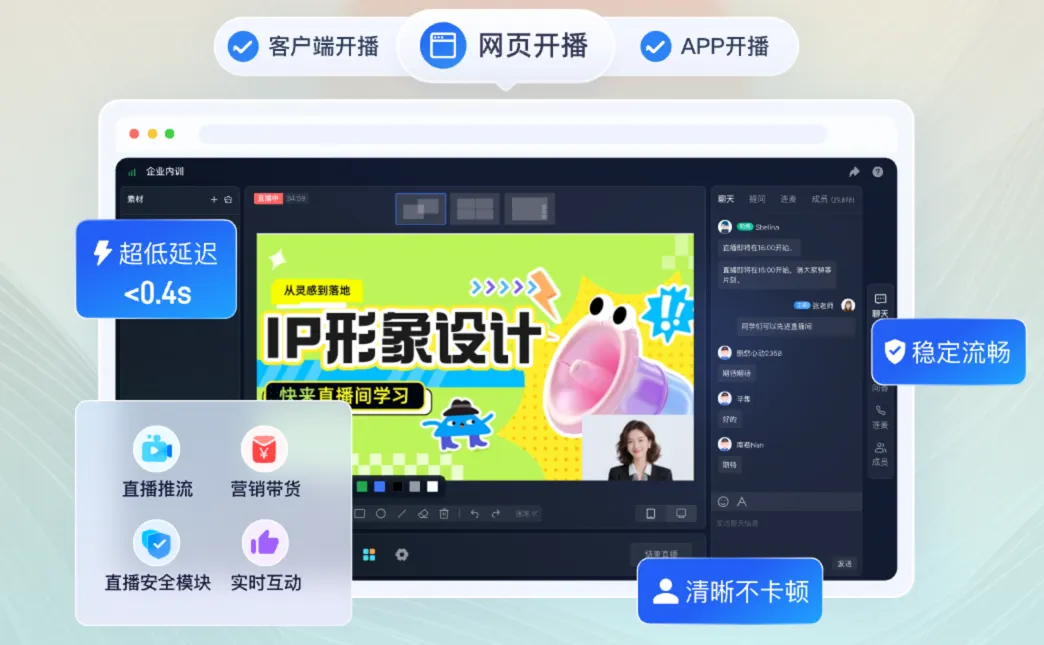 同时还支持定制专属直播界面,且所有数据沉淀在企业自有服务器,满足金融、能源等行业的保密需求,最快一个星期可完成对接。