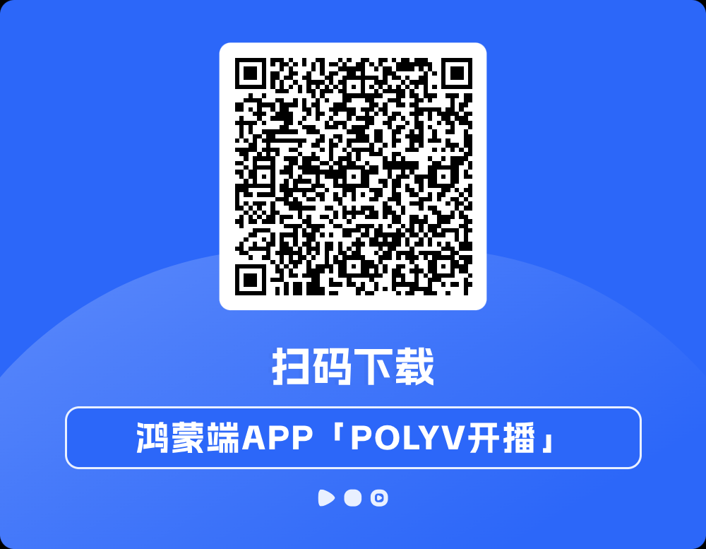 保利威「POLYV开播」已完成鸿蒙系统原生适配,全体鸿蒙用户均可前往华为应用市场下载体验,或扫描下方二维码即可下载安装。