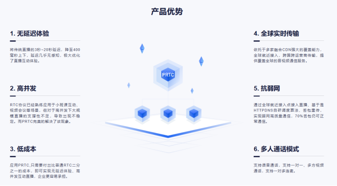 ·自研PRTC无延迟技术,实时互动延迟控制在400ms以内,适配跨国会议、远程培训等即时沟通场景。