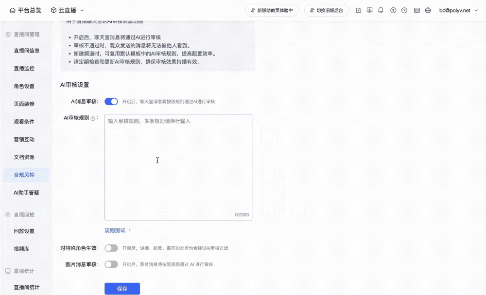 保利威AI聊天审核设置步骤