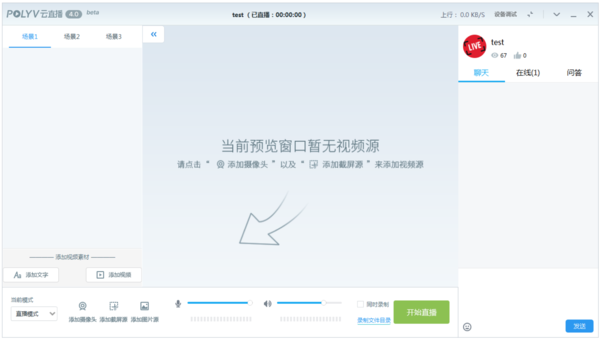 七、直播场景的设置优化,在同一台电脑上可进行不同场景的直播切换;