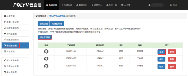2.点击【子频道管理】——【创建子频道】,获取新的子频道号及其信息,如图: