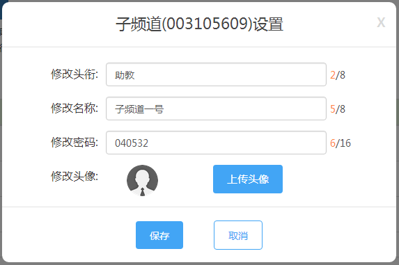 3.点击表格操作处的【修改】可以对子频道号的信息进行修改,如图: