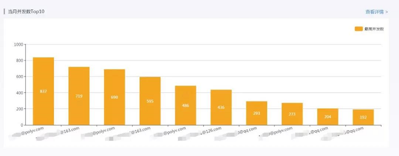 ▲ 当月各分账号并发数Top 10状况