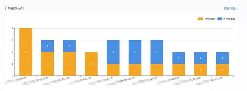 ▲ 当月各分账号频道数Top 10使用状况