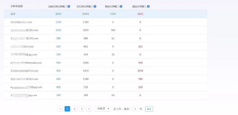 ▲ 当月各分账号分钟数使用详情