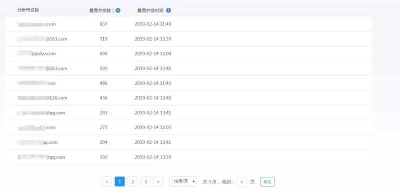 ▲ 当月各分账号并发数详情
