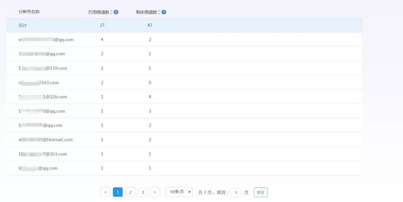 ▲ 当月各分账号频道数使用详情