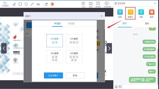 功能入口:客户端–>互动功能–>答题卡–>快速答题