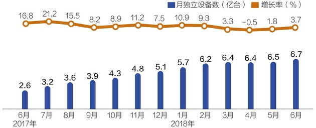 ▲2017年6月~2018年6月短视频行业月独立设备数
