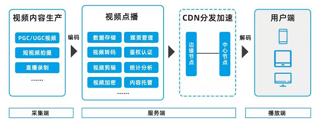 上文我们有说到,点播系统的主要功能就是让用户选择并观看视频。这个一句话就能描述的功能,背后依靠的是一套非常成熟完善的视频采集分发体系。