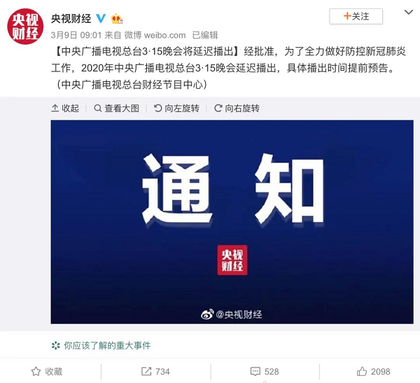 虽然晚会延迟,但是诚信、正直、敢于为消费者权益发声的精神不会缺席。