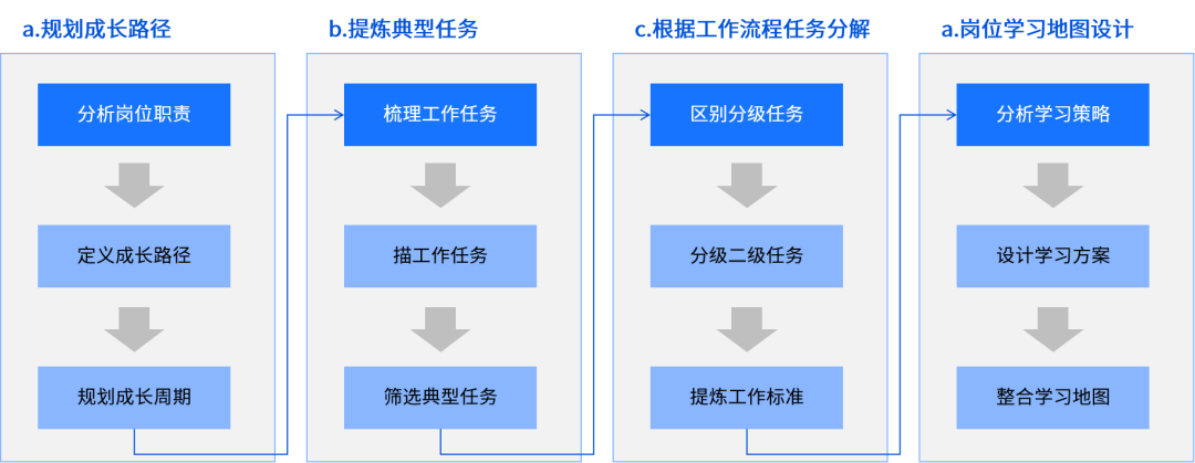 岗位任务从员工实际工作任务/场景出发,梳理并提炼关键流程、节点、要素,再从中提取完成相应任务所需的知识、技能、态度(素质),从而设计课程清单。