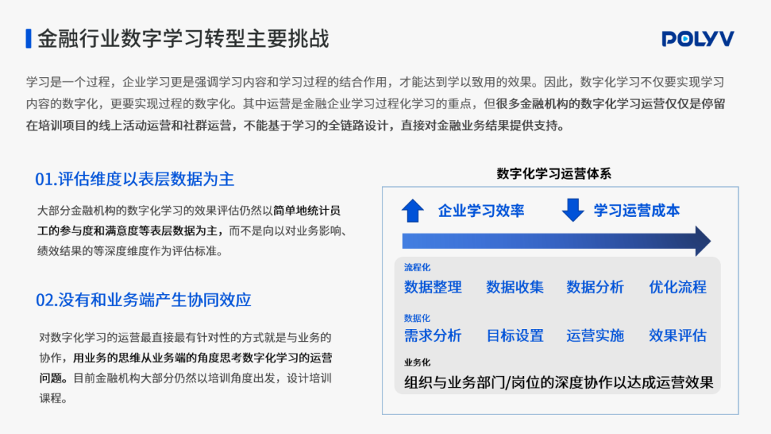 此外,金融机构的直播培训运营更多集中在活动运营和社群运营层面,而不是基于学习全链路出发,难以为金融业务结果提供支持。