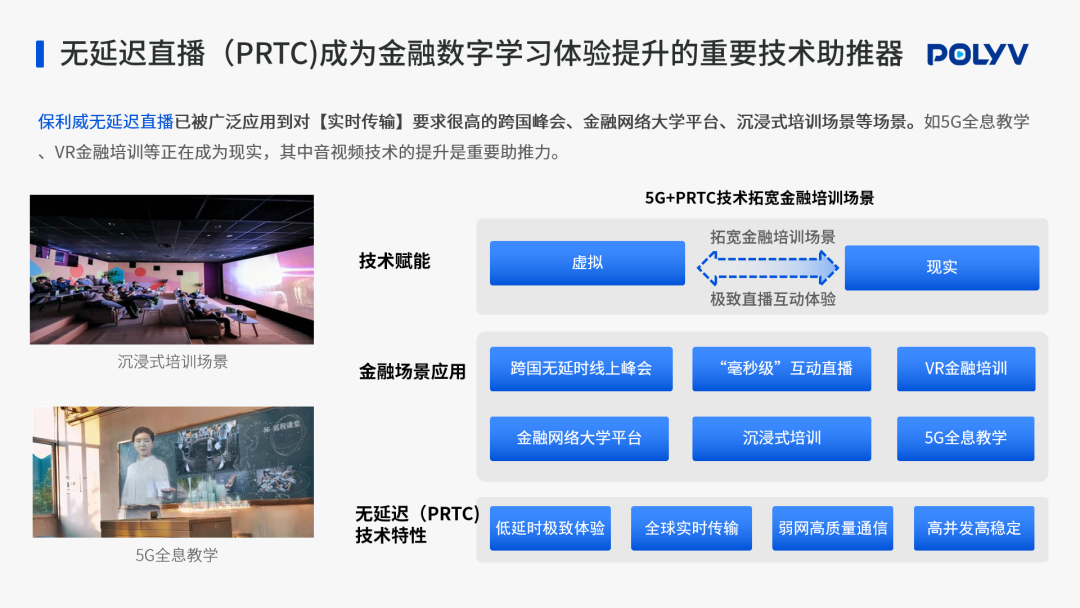 6月2日,保利威在无延迟直播产品发布会上重磅发布保利威无延迟直播(PRTC)全系产品,实现5大创新突破,助力金融行业升级直播培训新体验,赋能线上服务升级,为企业内训提供技术助力。