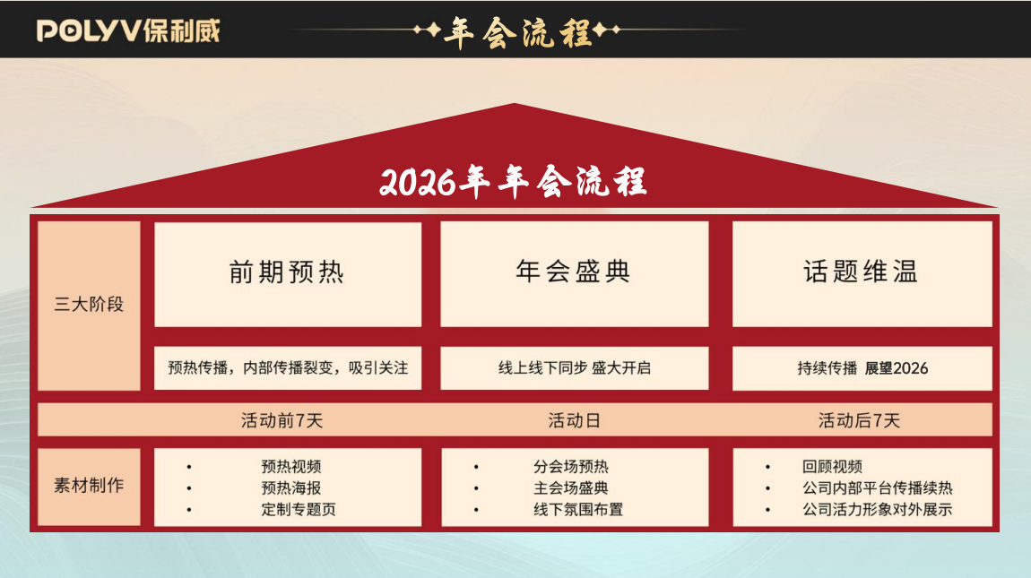 从“年会能直播”到“年会直播好”,市场变化日新月异,但技术的价值始终在于稳扎稳打的落地。保利威多年深耕技术,真正实现年会直播“千里同屏,无感联动”,适配每一份追求务实、看重稳健的需求。