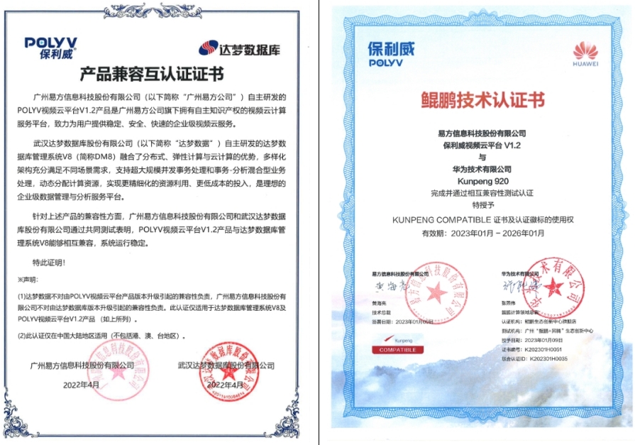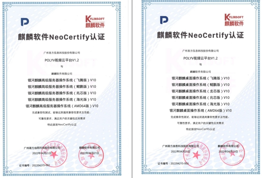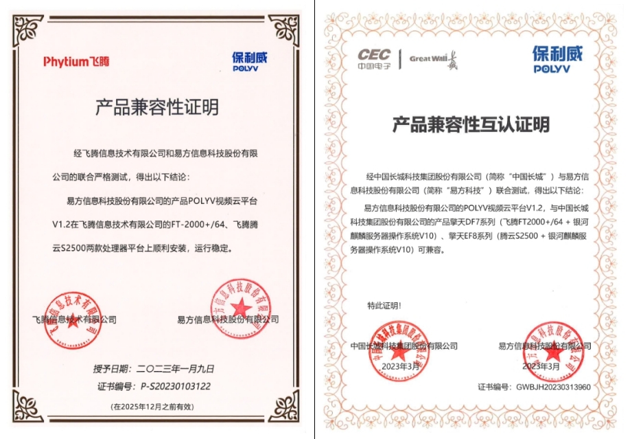(ps:以下是以保利威提供的【云直播】技术为例,它能查到的信创适配证书部分如下:)